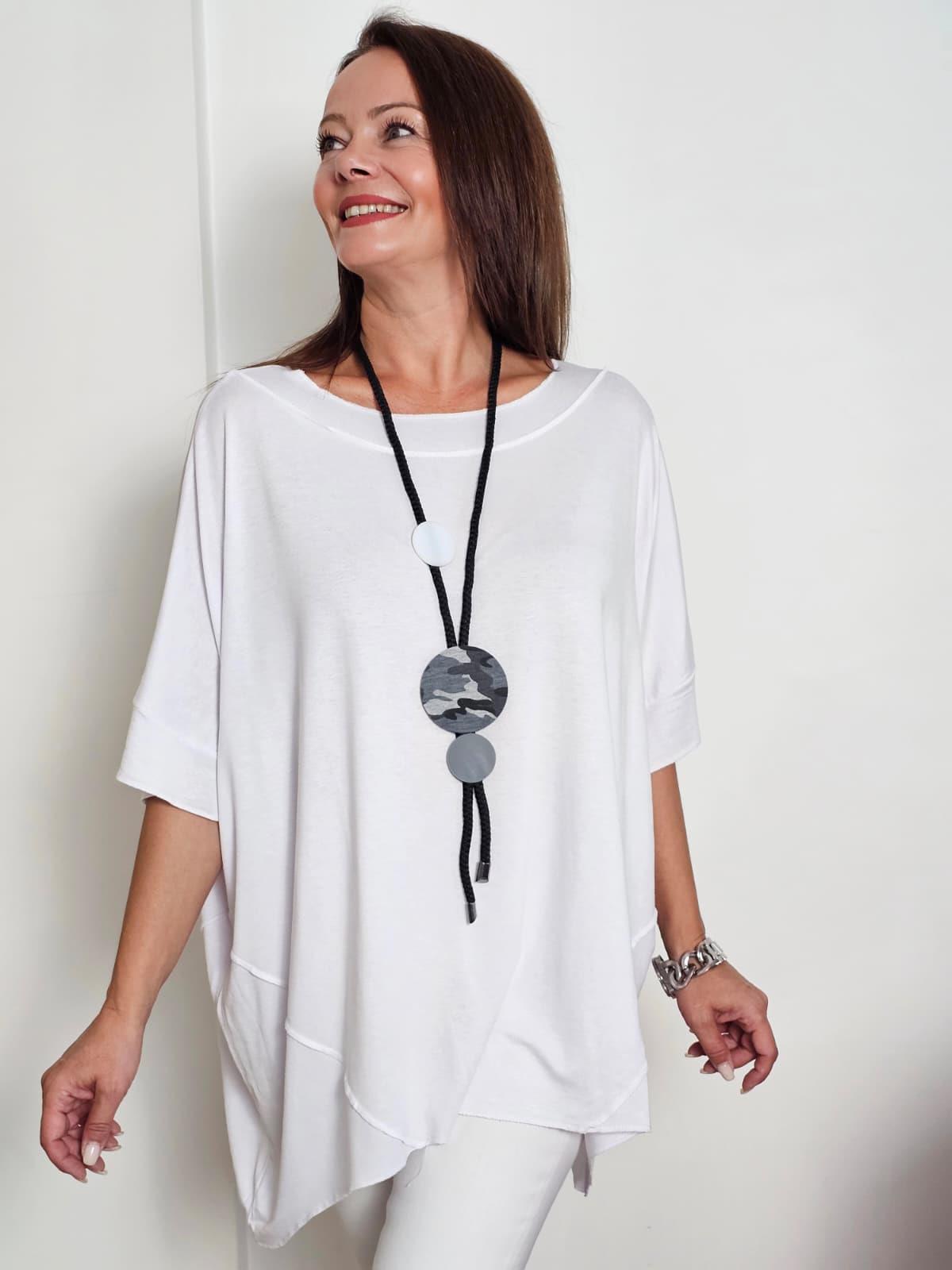FELİX13598 Kısa Kol Ters Dikiş Geniş Kalıp Beyaz Bluz