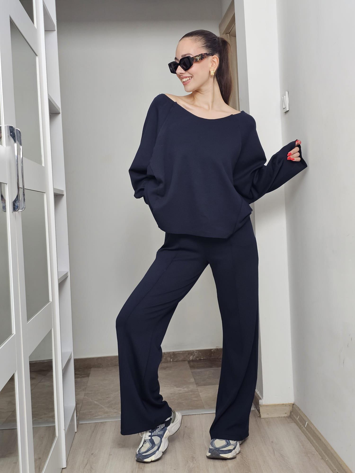 FELİX14145 Dikiş Detaylı Rahat Kalıp Lacivert Modal Takım