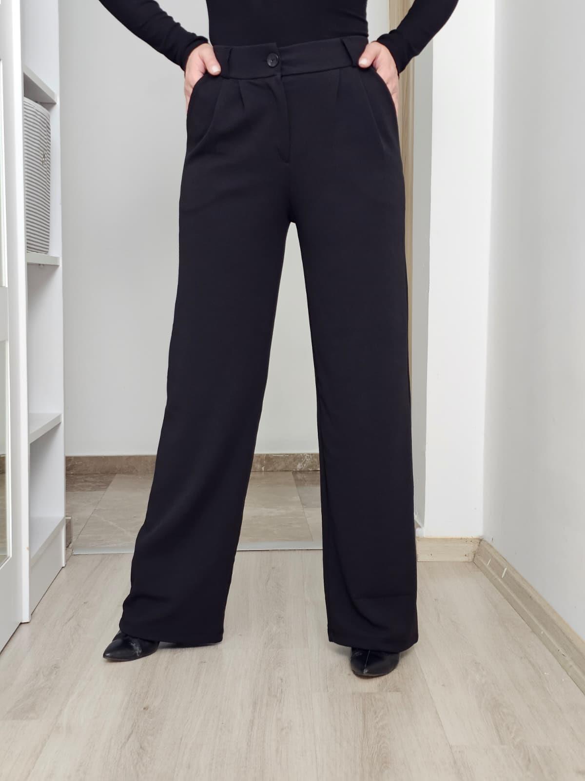 FELİX14166 Bel Lastikli Pileli Krep Palazzo Siyah Pantolon