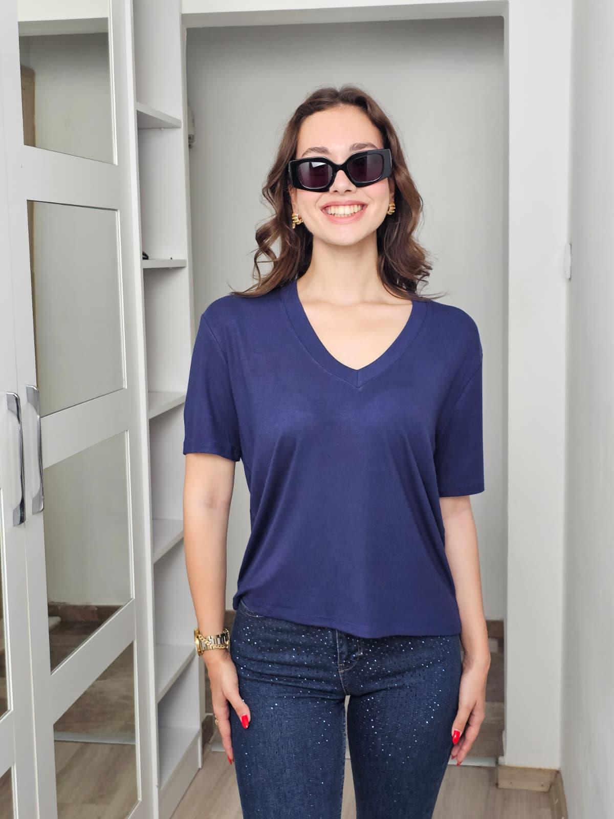 FELİX14168 Lacivert V Yaka Basic Tişört