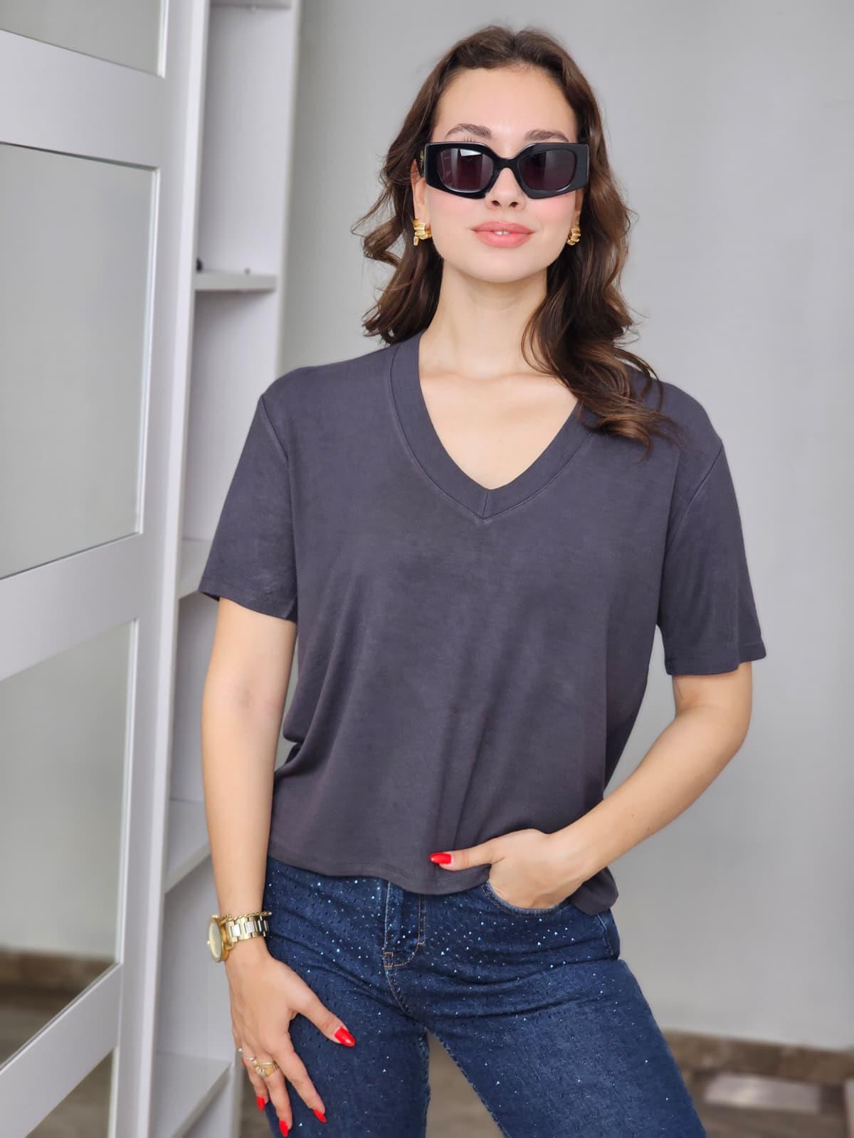 FELİX14171 Antrasit V Yaka Basic Tişört